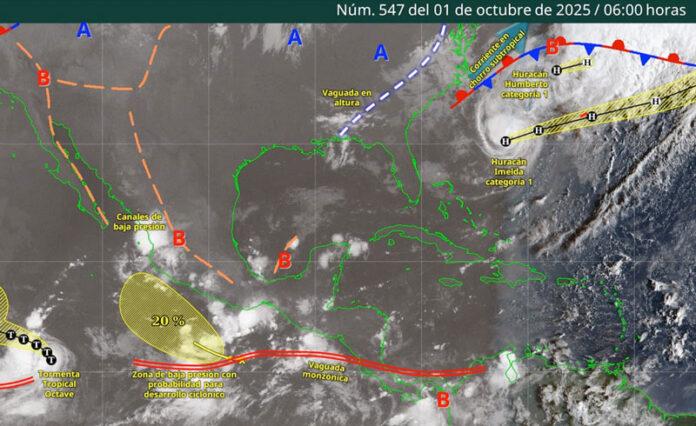 De acuerdo con el pronóstico del tiempo emitido por la Comisión Nacional del Agua (Conagua), todos los fenómenos son debido a la Onda Tropical número 35, la cual, será absorbida por una zona de baja presión con probabilidad de desarrollo ciclónico frente a la costa de Oaxaca.