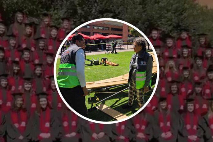Graduados de la Licenciatura en Psicología de la Universidad Iberoamericana (Ibero), en la Ciudad de México (CDMX),resultaron lesionados al colapsar una plataforma instalada para la toma de la fotografía conmemorativa por la conclusión de estudios de la generación 2022-2026.