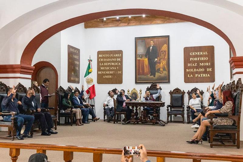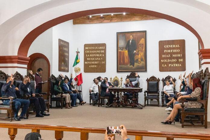 Oaxaca de Juárez, Oax.– En sesión ordinaria de Cabildo, encabezada por el presidente municipal Ray Chagoya, las y los concejales de Oaxaca de Juárez aprobaron diversos acuerdos en beneficio de la ciudadanía, orientados al impulso económico, la preservación del patrimonio, la regularización de servicios municipales y la seguridad vial.