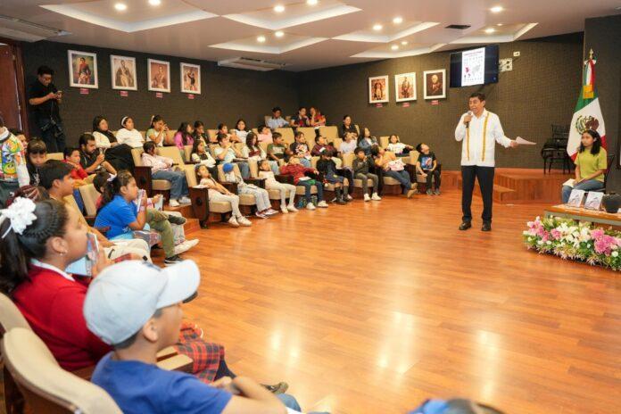 Durante este espacio en el salón Libertadores Latinoamericanos en Palacio de Gobierno, el Mandatario estatal destacó que esta estrategia tiene como objetivo fomentar entre la sociedad oaxaqueña, la educación, alfabetización y sana recreación a través de la literatura.
