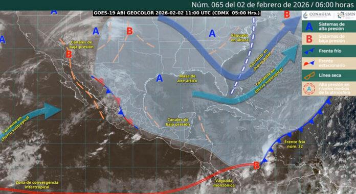En zonas altas de la Mixteca, Sierra de Juárez, Sierra Sur, Sierra de Flores Magón y Valles Centrales, se esperan probables heladas al amanecer. Asimismo, persistirá el evento de norte fuerte a muy fuerte, con rachas de 70 a 90 kilómetros por hora en el tramo carretero La Venta–La Ventosa, extendiéndose hacia el Golfo de Tehuantepec, donde se prevé oleaje de 4 a 5 metros. Estas condiciones disminuirán hacia el final de la tarde.
