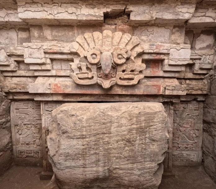 Este sepulcro -que data del año 600 d.C.- tiene 5 metros de longitud, entre 1.5 y 3 metros de ancho y una altura de 2 metros; el cual estaba destinado para resguardar y venerar un ancestro de alto rango.