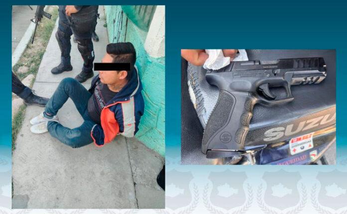 Detiene Policía Estatal a masculino por portación ilegal de arma de fuego en Fraccionamiento El Rosario