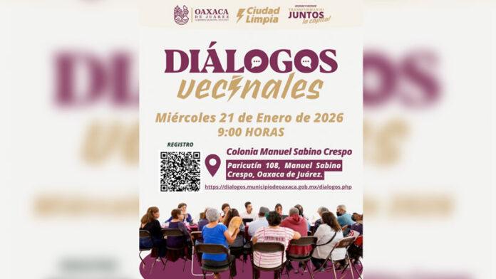 Oaxaca de Juárez, Oax— Con el objetivo de fortalecer la comunicación directa y fomentar la participación ciudadana, el Gobierno Municipal de Oaxaca de Juárez invita a vecinas y vecinos a participar en una nueva jornada de Diálogos Vecinales, un ejercicio de encuentro y escucha que permite construir soluciones desde el territorio.