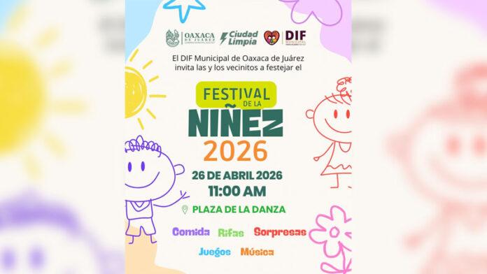 Oaxaca de Juárez, Oax.— Con el objetivo de fomentar la convivencia familiar y celebrar la alegría de la infancia, el Sistema DIF Municipal de Oaxaca de Juárez, encabezado por su presidenta honoraria Gaby García Fernández del Campo, invita a las familias capitalinas a participar en el Festival de la Niñez 2026.
