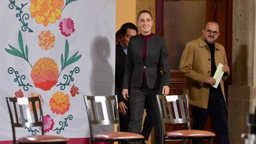En el Salón Tesorería, la presidenta Claudia Sheinbaum recordó que el empleo ha aumentado, “octubre fue el año de mayor número de empleos histórico en el país y un crecimiento en el mes de octubre muy importante”.