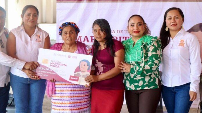 San Felipe Jalapa de Díaz, Oax.- La Secretaría de Bienestar, Tequio e Inclusión (Sebienti) otorgó 87 plásticos del programa Tarjeta Margarita Maza a igual número de jefas de familia en San Felipe Jalapa de Díaz.