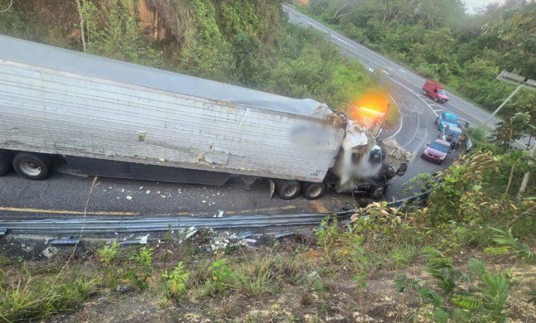 Fuerte choque frontal de un tráiler sobre la carretera Coatzacoalcos-Salina Cruz complica la circulación en Oaxaca
