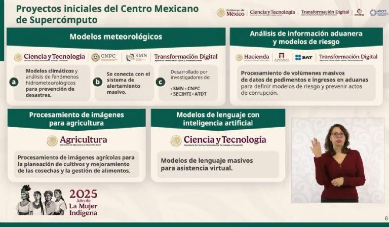 “Ya vamos a poder empezar, desde enero, a poder utilizar capacidad de cómputo, y estamos, de verdad, muy agradecidos para poder ir resolviendo algunos temas que, por instrucción de la presidenta Claudia Sheinbaum, pues resultan apremiantes, como es el tema, por supuesto, de predicción meteorológica”, dijo.