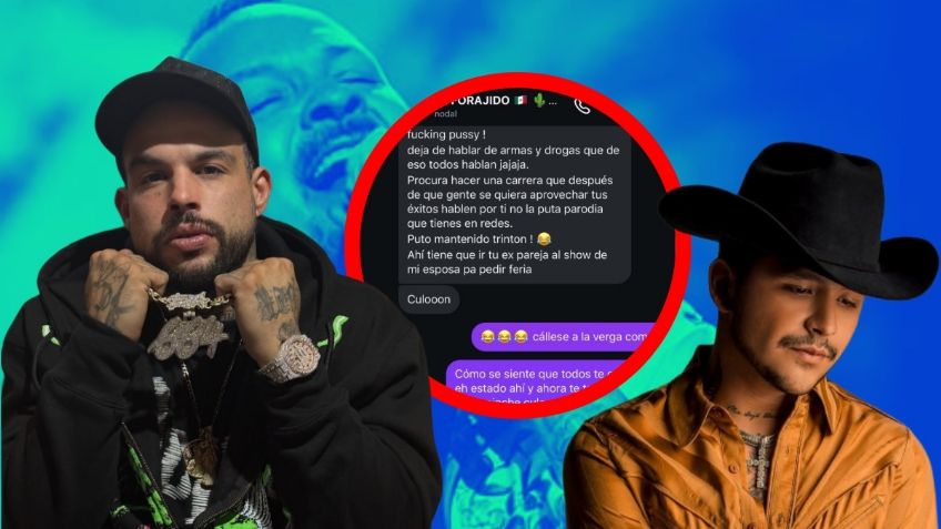 Fue por medio de una publicación de Instagram que el rapero compartió una captura de pantalla del chat de la plataforma donde Nodal se acercó para externar su molestia por la pelea que trae con la Dinastía Aguilar, especialmente luego de que el domingo el rapero no dudó en compartir una foto de la familia retocada con sus caras en forma de perro.