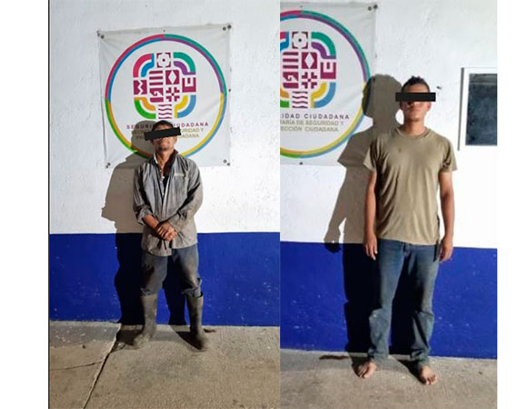 Los uniformados les localizaron una cangurera que contenía un arma de fuego tipo pistola calibre 9 mm, tres cargadores metálicos, 30 cartuchos útiles del mismo calibre y un cuchillo con estuche tipo rambo. Los detenidos, identificados como A.L.I. y V.F.L.C., no contaban con los permisos correspondientes para su portación.