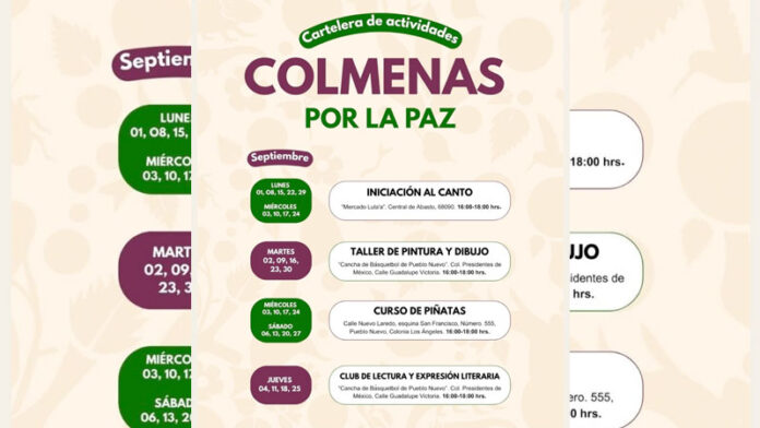 Oaxaca de Juárez, Oax.- El Gobierno Municipal de Oaxaca de Juárez, a través de la Secretaría de Cultura, Educación y Fomento a la Lectura, invita a las vecinas y vecinos de la capital a participar en la cartelera de actividades de Colmenas por la Paz, un espacio de encuentro comunitario que promueve la convivencia, la creatividad y el aprendizaje colectivo.