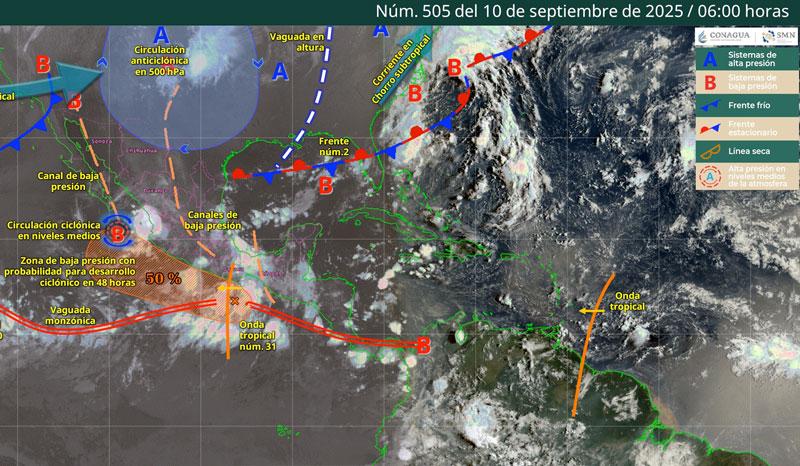 Estos fenómenos son ocasionados por la onda tropical número 31, asociada con una baja presión y flujo de humedad impulsada por la vaguada monzónica.