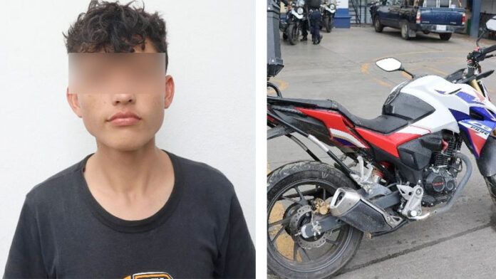 La Secretaría de Seguridad Vecinal dio a conocer que se trata de Leonardo F. S., de 18 años de edad, quien ya ha sido detenido en dos ocasiones también por robo de motocicleta.