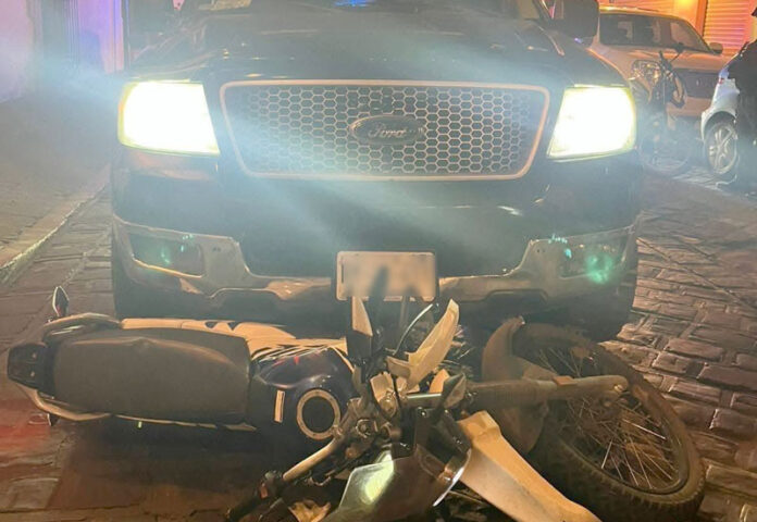 Fue en el cruce de las calles de Reforma y Morelos en el Centro Histórico, donde le cerró el paso con la motocicleta, pero el conductor de la camioneta la embistió y arrastró por varios metros.