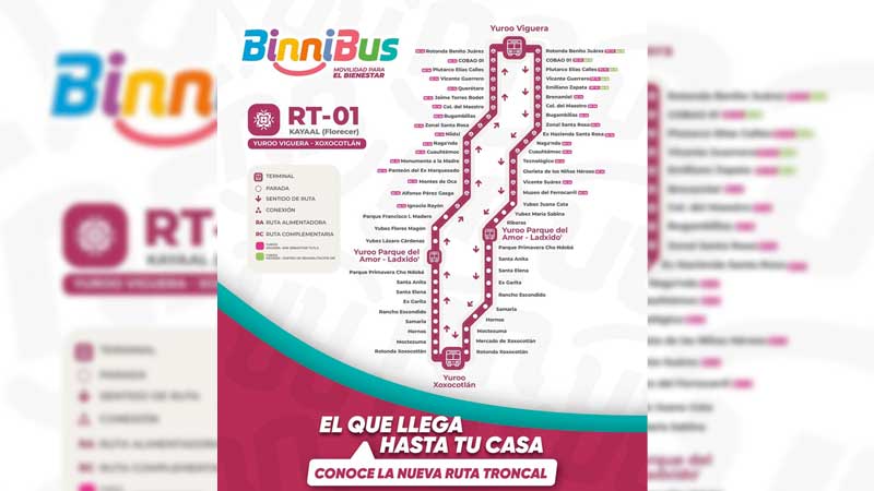 La secretaria de Movilidad, Yesenia Nolasco Ramírez informó que en la etapa preoperatoria de la RT-01 se contará con el apoyo de las policías Vial Estatal; Auxiliar, Bancaria, Industrial y Comercial (PABIC) y Municipal de Oaxaca de Juárez; para evitar obstrucciones en el carril preferencial del BinniBus, la seguridad vial operativa y fortalecer la capacidad de control y sanción.
