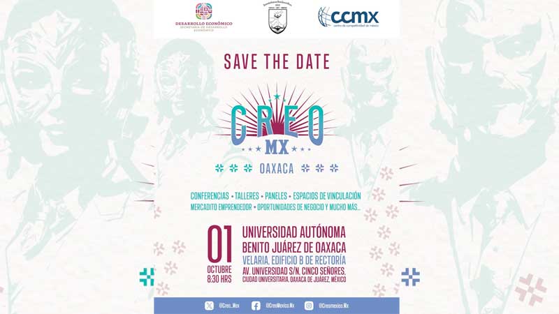 Tlalixtac de Cabrera, Oaxaca.- La Secretaría de Desarrollo Económico (Sedeco) respalda el talento local y consolida la cultura emprendedora en el estado, a través del evento CREO MX Oaxaca 2025, que se llevará a cabo el 1 de octubre en la Universidad Autónoma Benito Juárez de Oaxaca (UABJO).