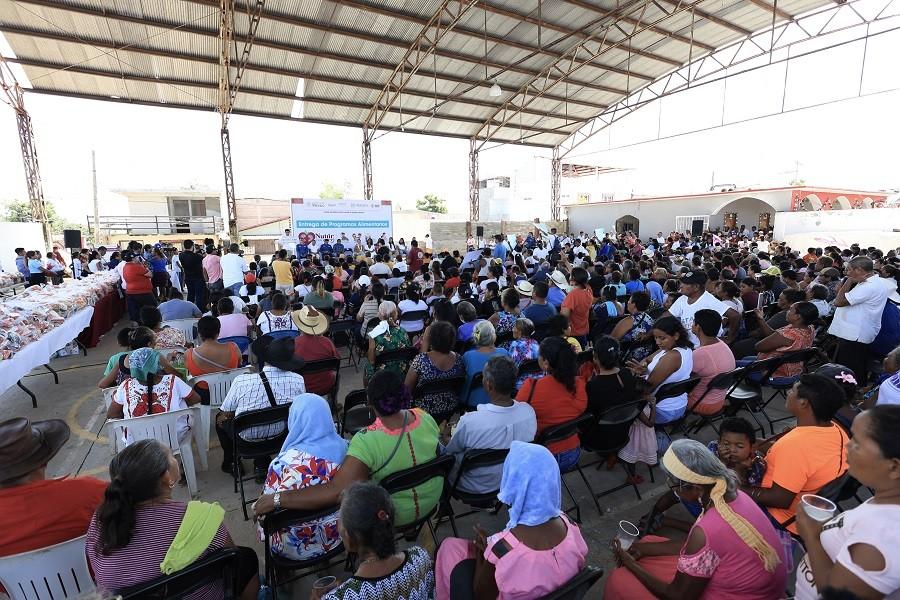 Santiago Llano Grande, Oax.- Con el objetivo de garantizar una alimentación nutricia en este municipio de la región Costa, la Presidenta Honoraria del Sistema Estatal para el Desarrollo Integral de la Familia (DIF) Oaxaca, Irma Bolaños Quijano entregó apoyos a 425 personas de Santiago Llano Grande.