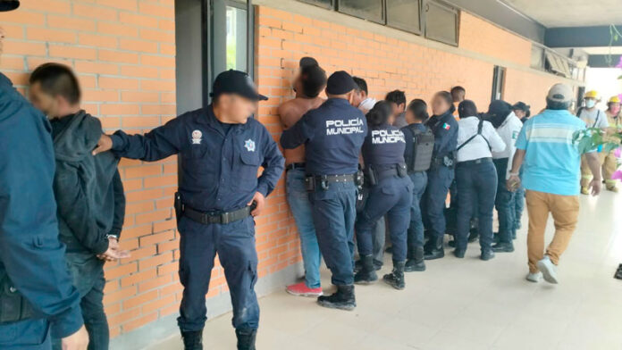 Elementos de la Agencia Estatal de Investigaciones y de la Policía Municipal detuvieron a siete personas identificadas como: J.C.L.C., J.M.D.C., M.H.H., J.R.C., J.C.H.H. y G.R.H., además del supuesto líder de iniciales E.C.G., quienes quedaron a disposición de la autoridad correspondiente para que se determine su situación jurídica.