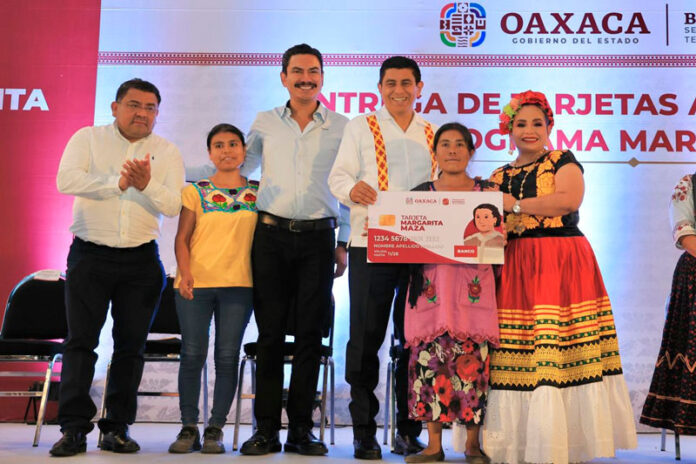 Oaxaca de Juárez, Oax.- Como un reconocimiento al trabajo que realizan las jefas de familia de Oaxaca, el Gobernador Salomón Jara Cruz entregó mil 970 plásticos del programa Tarjeta Margarita Maza a igual número de beneficiarias de la región Valles Centrales, con una inversión total de 19 millones 700 mil pesos.