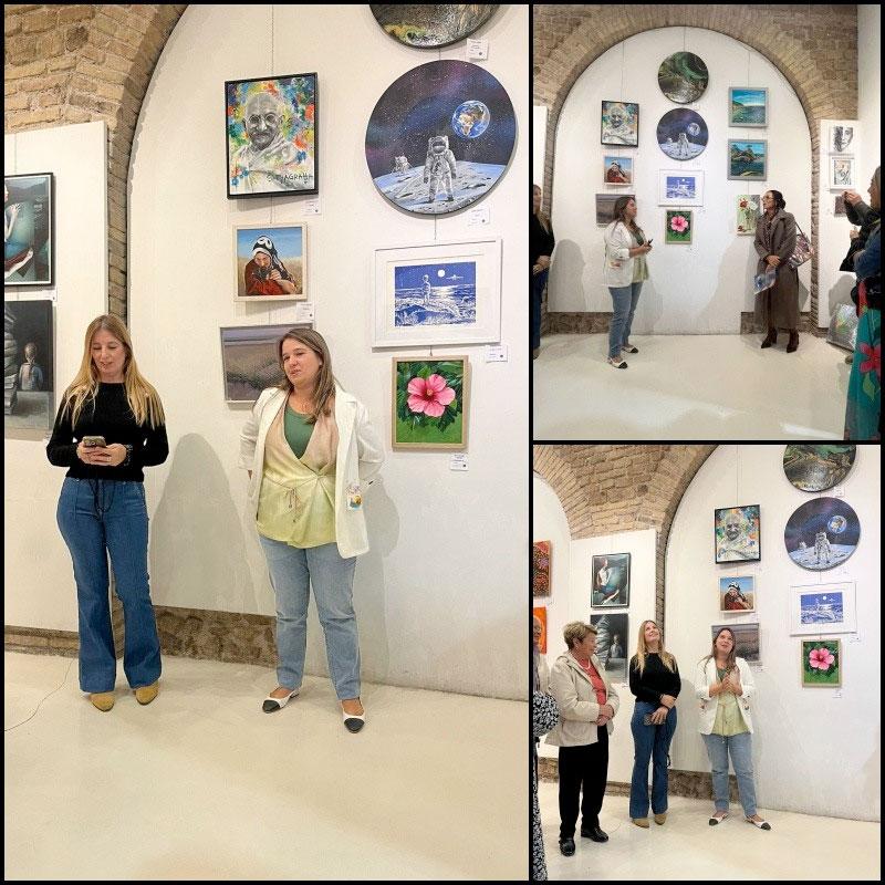 Roma, Italia .- Ni la huelga general que se implantó en Roma fue impedimento para que se exhibieran los trabajos de treinta artista, españoles e internacionales liderados por Sun Art que dirige Alejandra y Alicia Natale. “Senza Confini – Roma, 2025 Sin fronteras” es la exposición que se presenta en la Galleria Arca di Noesis Coloseo, situada cerca del Coliseo de Roma. Fue visitada por gestores culturales, propietarios de galerías, y recibió artistas malagueños que viajaron para sumarse a este evento cultural.