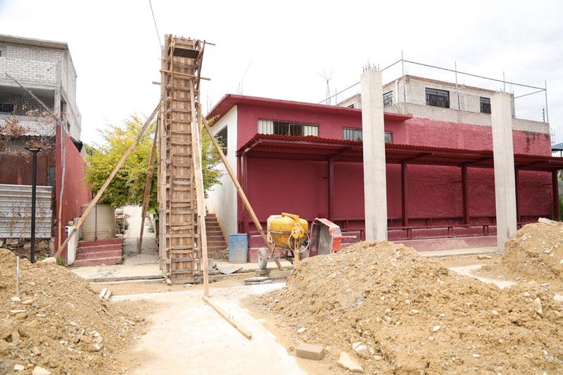El titular de la dependencia, Carlos Vichido Hernández informó que se trabaja en un área de 624.68 metros cuadrados donde ya se realizaron labores de nivelación de terreno y se colocan columnas de concreto para posteriormente instalar la cubierta con su respectivo sistema de drenaje pluvial.