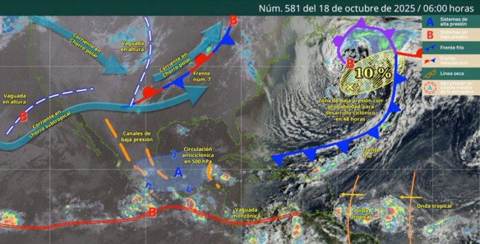 Asimismo, persistirá el oleaje elevado y vientos moderados con rachas fuertes a lo largo del litoral oaxaqueño, además de nieblas densas en zonas serranas y sensación ambiental fría a fresca al amanecer.