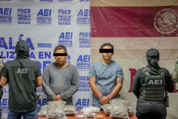 Oaxaca de Juárez, Oax.- En operativo interinstitucional coordinado, la Fiscalía General del Estado de Oaxaca (FGEO) realizó la detención de dos operadores de la célula delictiva del “Comandante Cromo”, además de lograr el aseguramiento de más de 100 kilogramos de drogas, durante un despliegue táctico que se llevó a cabo en el Istmo de Tehuantepec.