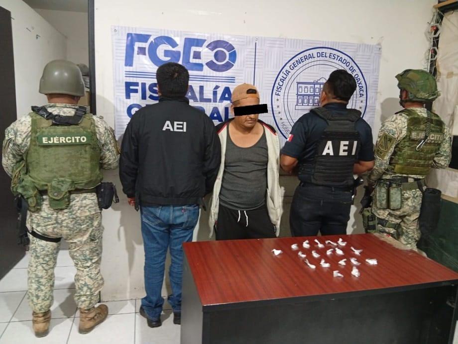 De acuerdo con la investigación penal, R.C.S. fue aprehendido durante un operativo que se llevó a cabo en un domicilio ubicado en la calle Prolongación de Niños Héroes, de la colonia Compositores, en San Pablo Villa de Mitla, distrito de Tlacolula de Matamoros, donde además de la detención del imputado, los agentes ministeriales aseguraron diversas dosis de metanfetaminas.