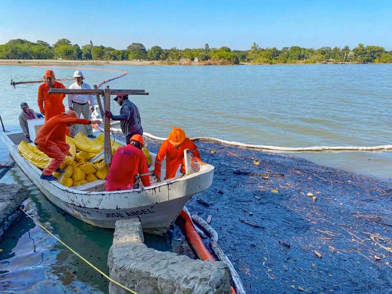 En campo operan más de 80 unidades terrestres y fluviales, entre las que se incluye una embarcación especializada en la atención de emergencias clase FIFI II y 5 lanchas, desplegadas para el rastreo, la contención y el acceso seguro a áreas críticas. Las labores incluyen la instalación de 48 cordones oleofílicos y 13 barreras marinas, así como la recuperación de hidrocarburos en superficie mediante 2 equipos skimmers y 4 equipos de respiración autónoma, apoyados por 11 retroexcavadoras que habilitan brechas y caminos.