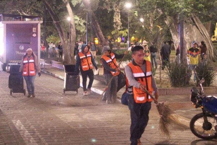 Por instrucción del presidente municipal Raymundo Chagoya Villanueva, la Secretaría de Servicios Vecinales coordinó un operativo especial a través de las direcciones de Aseo Público y Mantenimiento Urbano, con tareas permanentes de barrido manual, recolección continua de residuos, vaciado de papeleras y rehabilitación de áreas verdes en puntos estratégicos como el Zócalo, Alameda de León, Santo Domingo, El Llano, Jardín Labastida, Conzatti y el Barrio de Jalatlaco
