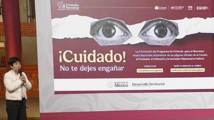 Edna Elena Vega Rangel, secretaria de Desarrollo Agrario, Territorial y Urbano, alertó de falsos gestores que están aprovechando el Programa de Vivienda para el Bienestar. En la conferencia de prensa, llamó a los interesados en el programa acercarse directamente para obtener información.