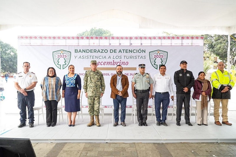 Oaxaca de Juárez, Oax.- El Gobierno del Estado realizó el Banderazo de Atención y Asistencia a Turistas por la temporada decembrina, que comprende del 19 de diciembre de 2025 al 11 de enero de 2026, lapso en el que se espera la llegada de más de 341 mil personas a la ciudad de Oaxaca, Bahías de Huatulco y Puerto Escondido.