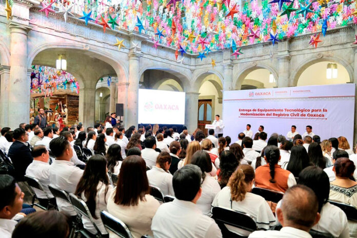 Oaxaca de Juárez, Oax.- Con una inversión superior a 11 millones de pesos, el Gobernador Salomón Jara Cruz entregó equipamiento tecnológico para la modernización de las 158 oficialías del Registro Civil de Oaxaca, lo que representa un paso firme hacia un servicio público más digno, eficiente y humano.