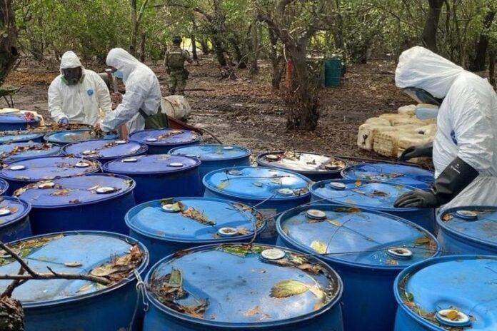En ese periodo fueron decomisados más de 96 toneladas de metanfetamina, 53 toneladas de cocaína, casi 18 toneladas de marihuana y más de mil kilogramos de fentanilo, además de miles de pastillas de esta sustancia sintética.