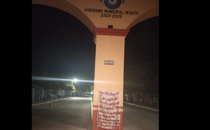 San Mateo del Mar, Oaxaca. Habitantes del municipio de San Mateo del Mar amanecieron este viernes con mantas de inconformidad colocadas en distintos puntos de la comunidad, en las que expresan su rechazo a lo que consideran injerencia externa en la administración municipal.