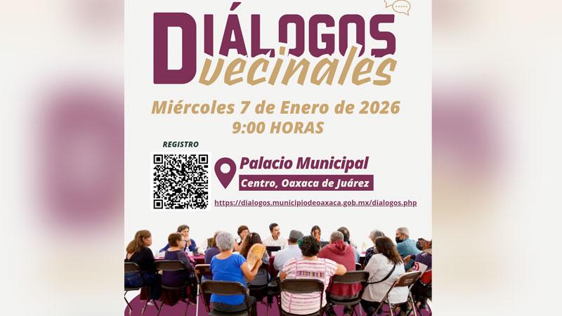 Oaxaca de Juárez, Oax.– Con el propósito de fortalecer la participación ciudadana y consolidar un gobierno cercano, el Municipio de Oaxaca de Juárez, encabezado por el presidente Ray Chagoya, llevará a cabo el primer Diálogo Vecinal del año, el cual se realizará en el Palacio Municipal de Oaxaca de Juárez, ubicado en el Centro Histórico de la ciudad.