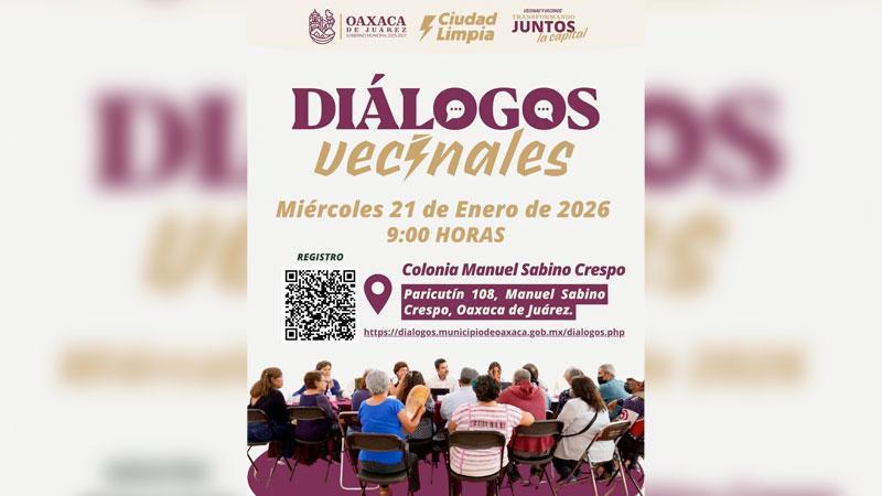 La actividad se llevará a cabo el miércoles 21 de enero de 2026, a las 9:00 horas, en la colonia Manuel Sabino Crespo, ubicada en Paricutín 108, Manuel Sabino Crespo, Oaxaca de Juárez, donde se abrirá un espacio para el intercambio de ideas, planteamiento de inquietudes y propuestas encaminadas al bienestar común.