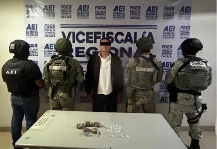 Fiscalía de Oaxaca catea punto de narcomenudeo, detienen a una persona, aseguran drogas y dinero en efectivo en Valles Centrales