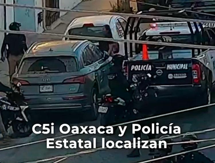 De manera inmediata, personal de la Policía Estatal adscrito al C5i Oaxaca, en coordinación con la Unidad Policial de Inteligencia Aérea, mediante drones de seguridad, implementó un operativo de búsqueda y seguimiento, logrando localizar el automóvil con las características proporcionadas, en las inmediaciones del jardín Francisco I. Madero, sobre la calzada Madero, en la ciudad capital.
