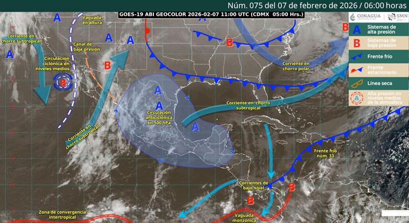 Oaxaca de Juárez, Oax.- La Coordinación Estatal de Protección Civil y Gestión de Riesgos (CEPCyGR) informa que un anticiclón ubicado en niveles medios de la troposfera favorecerá condiciones de tiempo estable sobre la mayor parte del estado, con cielo mayormente despejado, intensa radiación solar y recuperación gradual de las temperaturas durante el día.