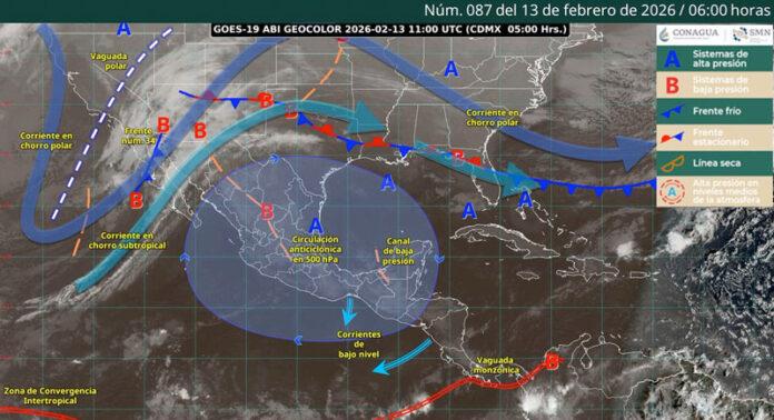 De acuerdo con el pronóstico del tiempo emitido por la Comisión Nacional del Agua (Conagua), la amplía circulación anticiclónica favorecerá condiciones de estabilidad atmosférica en mayor parte de la entidad, con presencia de calima durante el amanecer, cielo despejado, ambiente seco, intensa radiación solar y sensación calurosa durante la tarde.