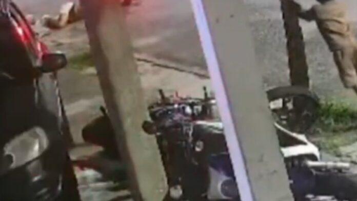 Una cámara de vigilancia captó el momento del ataque. En el video, de 52 segundos de duración y compartido por la cuenta de X @ActualidaViral, se observa cómo el hombre y su pequeño hijo viajan en la motocicleta, pero habrían sido derribados por los disparos de uno o dos sicarios en otra moto.