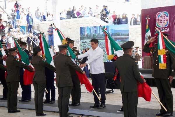 Oaxaca de Juárez, Oax.- En la celebración del Día de la Bandera, el Gobernador Salomón Jara Cruz refrendó la participación de Oaxaca en la tarea nacional de fortalecer la seguridad y la paz en estos momentos cruciales; caminando junto a la Presidenta Claudia Sheinbaum Pardo en defensa de la justicia, soberanía y dignidad de México.