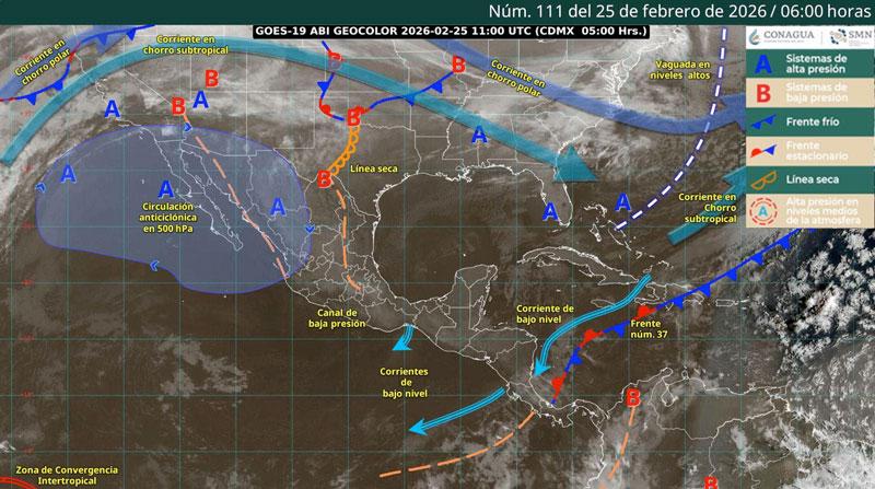 Estas condiciones estarán moduladas por el establecimiento de un anticiclón en niveles medios de la atmósfera, el cual se extenderá desde el Atlántico hacia la República Mexicana en forma de cuña de alta presión.