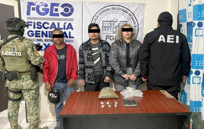 El segundo operativo se efectuó en un inmueble localizado en Privada de Aldama, en San Pablo Villa de Mitla, donde lograron la detención de otras tres personas, identificadas como O.F.V., H.O.F.C. y W.B.F.P.