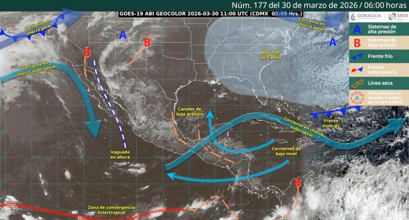 En tanto, una vaguada se fortalecerá, favoreciendo un ambiente fresco a frío al amanecer, así como la presencia de lluvias con chubascos y tormentas aisladas durante la tarde.