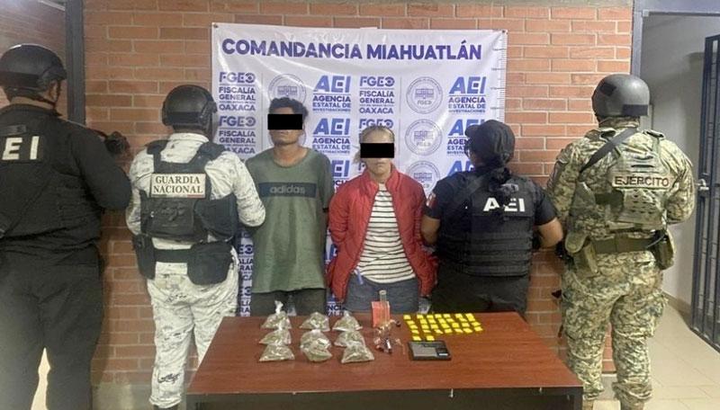 Oaxaca de Juárez, Oax. — Como resultado de labores de inteligencia criminal enfocadas en el combate al narcomenudeo, la Fiscalía General del Estado de Oaxaca (FGEO) ejecutó tres órdenes de cateo en el municipio de Miahuatlán de Porfirio Díaz, en la región de la Sierra Sur, con saldo de tres personas detenidas y el aseguramiento de presuntas drogas y armas de fuego.