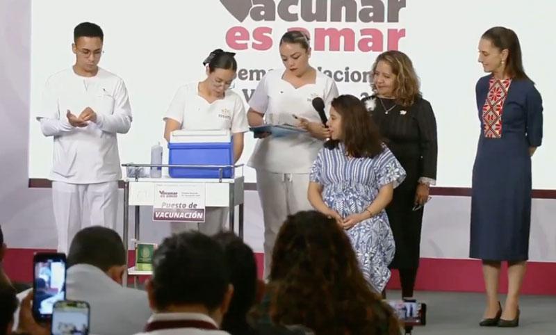 Como parte de la Semana Nacional de Vacunación en la Mañanera se aplicaron dosis del Virus Sincical Respiratorio (VSR) a dos mujeres embarazadas. Detalló que aunque la semana de vacunación es 25 de abril hasta el 2 de mayo, se decidió ampliar durante todo el mes de mayo.