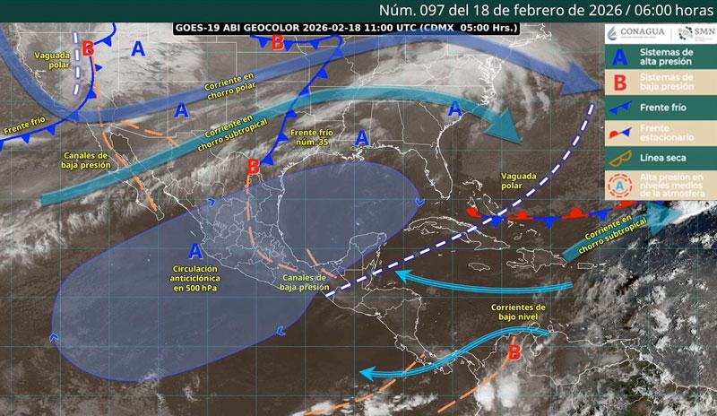 Por otro lado, un par de frentes fríos se extienden sobre el noroeste y norte del país, sin efectos previstos para el estado hasta el momento.
